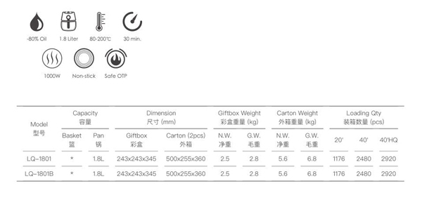 .烹饪温度设置范围:80-200 ℃, 适应各种食材