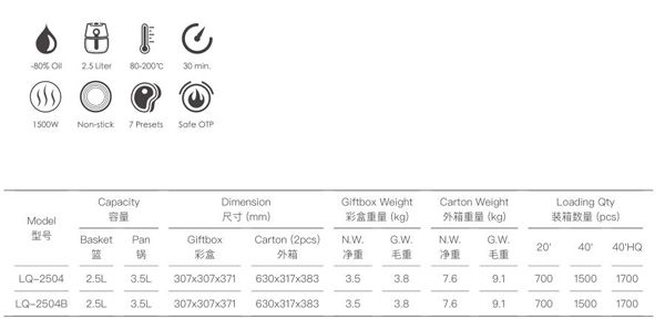 .烹饪温度设置范围:80-200 ℃, 适应各种食材