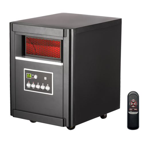 Plastic cabinet Energy saving Auto ModeLow setting: 900W High setting: 1500WDigital tube display Remote Control on-off switch with easy operation   Built-in thermal cut off PTC heater Negative ion air purification With FilterElectronic thermostat Setting range is 59-86F, or is 15-30C Uses conventional 120V 3 prong outlet  Height: 15.16" Width: 11.42" Depth: 13.9" Height: 38.5cm Width: 29cm Depth:35.3cm Electric Cord 71" (180.34cm)long, Rated at approximately 5200 BTU Amps: 12.5Watts: 1500Listed by cETLus
