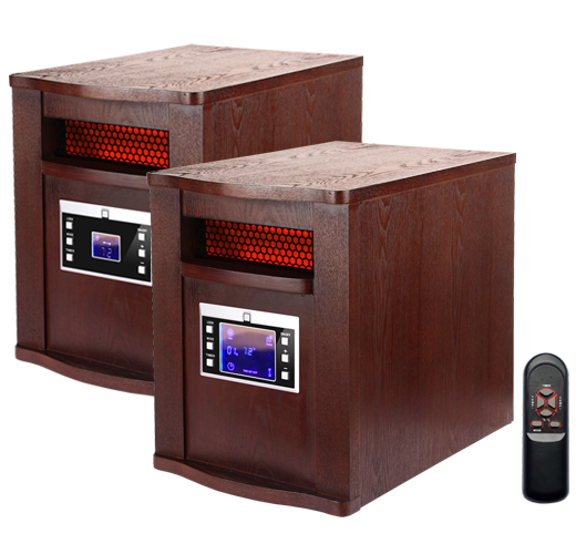 Quartz Infrared Heater Energy saving Auto ModeLow setting: 1000W High setting: 1500WFront Panel Push Button Controls LCD display Remote ControlUses infrared quartz tubeWooden CabineUses conventional 120V 3 prong outletHeight: 16.9" Width: 11.4" Depth: 15.7" Height: 43cm Width: 29cm Depth:40cm Electric Cord 71" (180.34cm)long, Rated at approximately 5200 BTU Amps: 12.5 Watts: 1500 Listed by cETLus The wooden cabinet appearance can be designed by customer