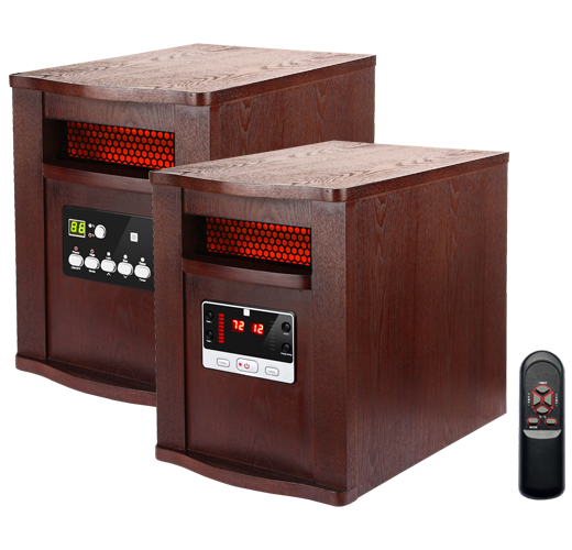 Quartz Infrared Heater Energy saving Auto ModeLow setting: 1000W High setting: 1500WFront Panel Push Button Controls LCD display Remote ControlUses infrared quartz tubeWooden CabineUses conventional 120V 3 prong outletHeight: 16.9" Width: 11.4" Depth: 15.7"   Height: 43cm Width: 29cm Depth:40cm   Electric Cord 71" (180.34cm)long, Rated at approximately 5200 BTU   Amps: 12.5 Watts: 1500 Listed by cETLus   The wooden cabinet appearance can be designed by customer
