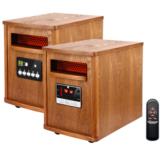 Quartz Infrared Heater Energy saving Auto ModeLow setting: 1000W High setting: 1500WFront Panel Push Button Controls LCD display Remote ControlUses infrared quartz tubeWooden CabineUses conventional 120V 3 prong outletHeight: 15.5" Width: 11.8" Depth: 16.5"   Height: 39.5cm Width: 30cm Depth:42cm   Electric Cord 71" (180.34cm)long, Rated at approximately 5200 BTU   Amps: 12.5 Watts: 1500 Listed by cETLus   The wooden cabinet appearance can be designed by customer