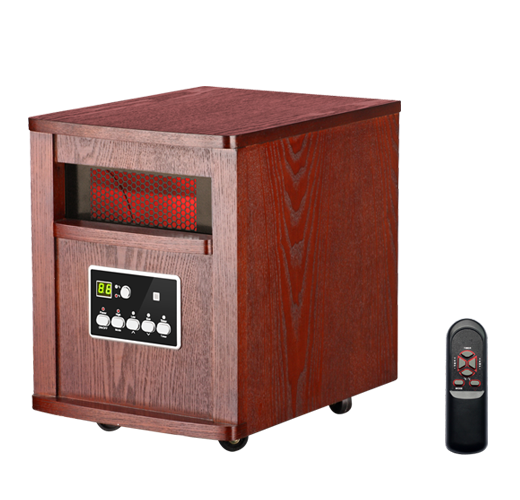 Wooden Cabinet Energy saving Auto ModeLow setting: 900W High setting: 1500WDigital tube display Remote Control on-off switch with easy operation Built-in thermal cut offPTC heaterNegative ion air purification With Filter Electronic thermostat Setting range is 59-86F, or is 15-30C Uses conventional 120V 3 prong outlet Height:15.35" Width: 12" Depth: 15.35" Height: 39cm Width: 30.5cm Depth:39cm Electric Cord 71" (180.34cm)long, Rated at approximately 5200 BTU Amps: 12.5Watts: 1500Listed by cETLus The wooden cabinet appearance can be designed by customer