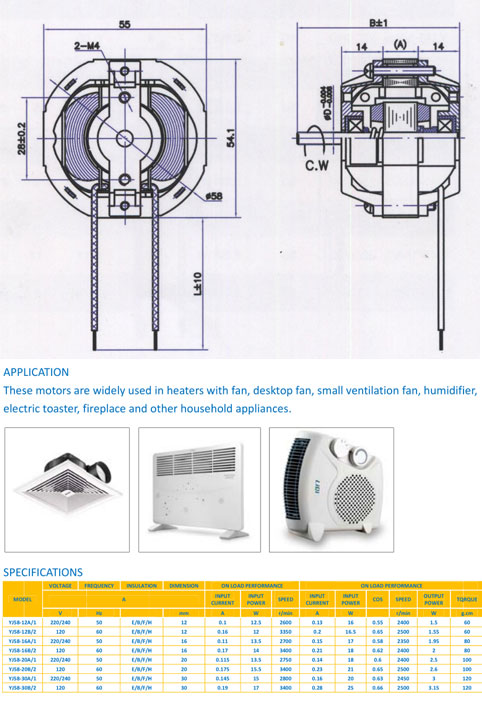 YJ58 SINGLE PHASE SHADED POLE MOTOR - BALL BEARING MOTOR