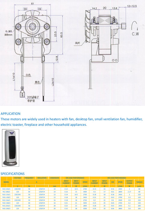 YJ48 SINGLE PHASE SHADED POLE MOTOR - SINGLE SPEED MOTOR