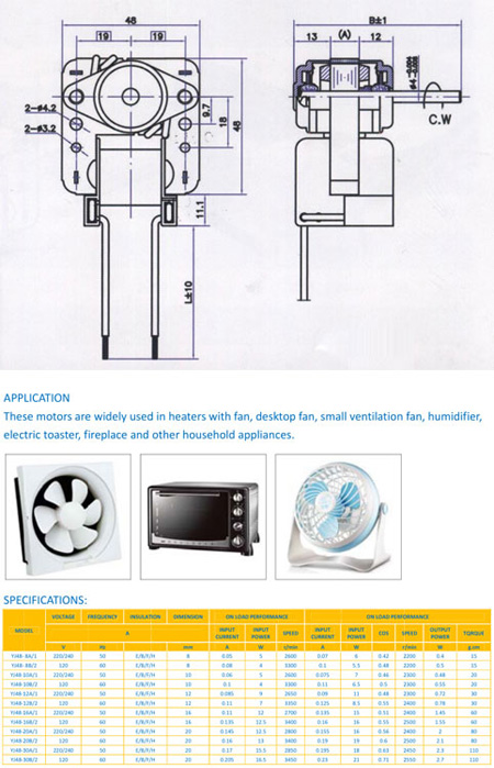 YJ48 SINGLE PHASE SHADED POLE MOTOR - SINGLE SPEED MOTOR