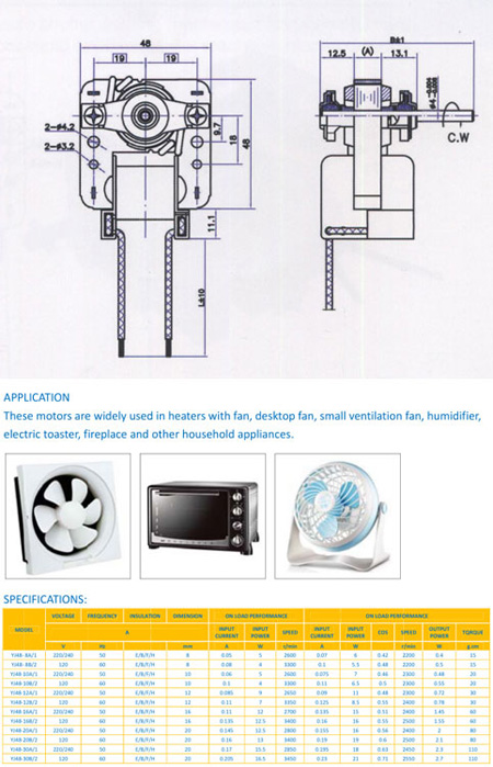 YJ48 SINGLE PHASE SHADED POLE MOTOR - TWO OR THREE SPEED MOTOR