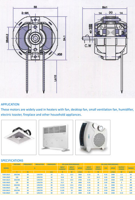 YJ48 SINGLE PHASE SHADED POLE MOTOR - SINGLE SPEED MOTOR